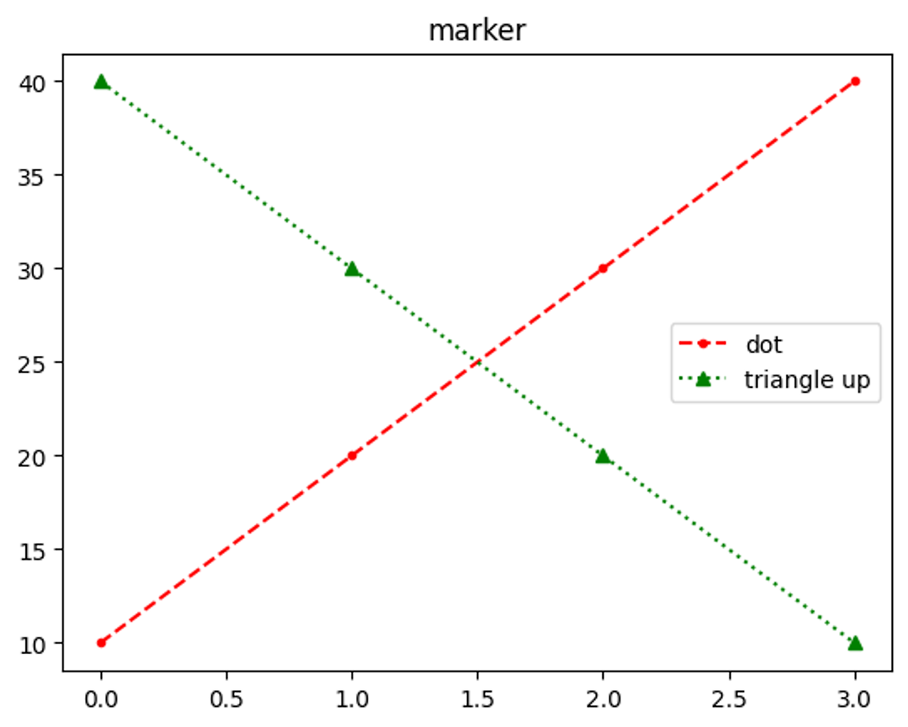 plt.plot([10, 20, 30, 40], 'r.--', label='dot') # 'r.--' <색상><마커모양><선모양>