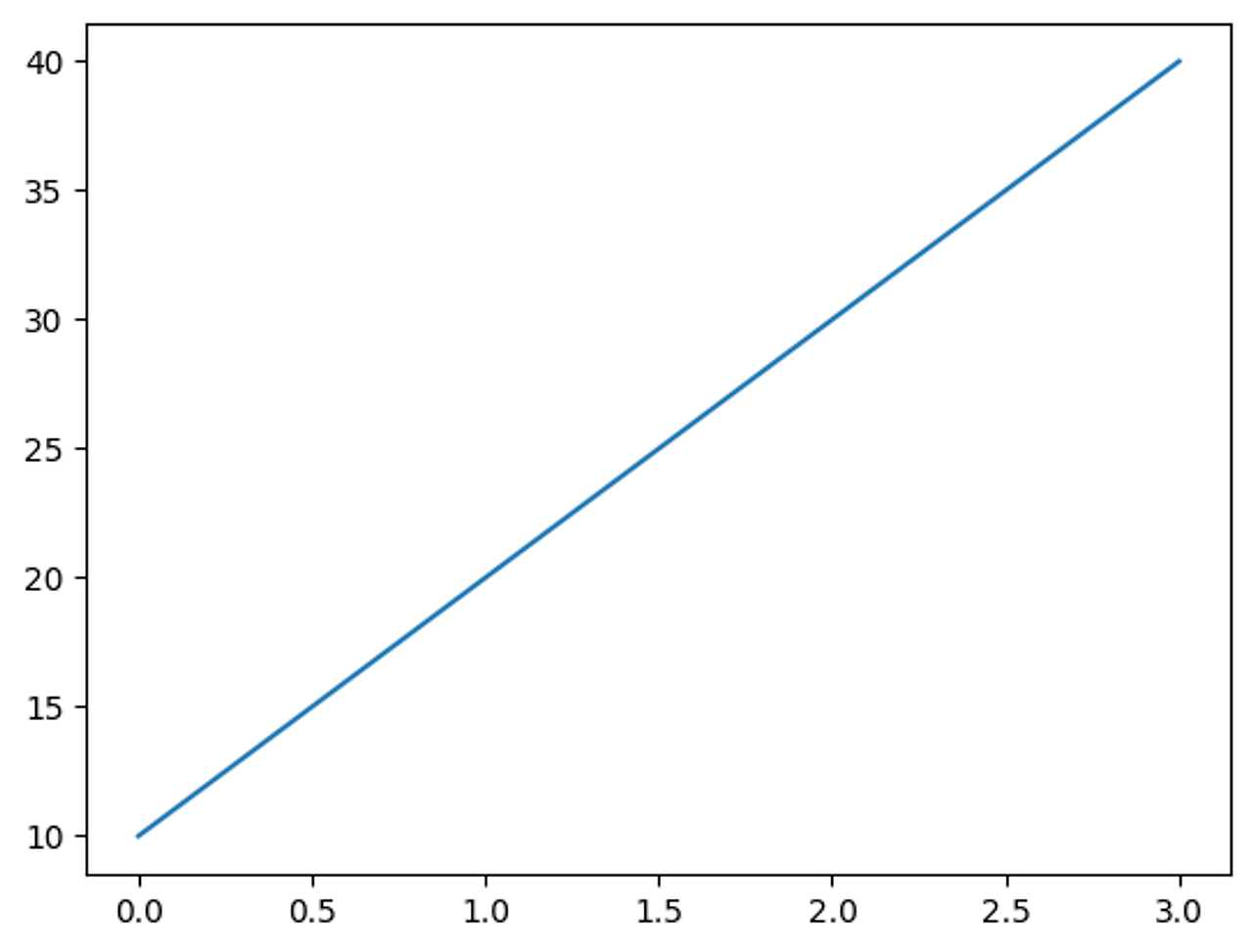 plt.plot([10, 20, 30, 40]) # y-축 데이터만 전달 했음. [10, 20, 30, 40]