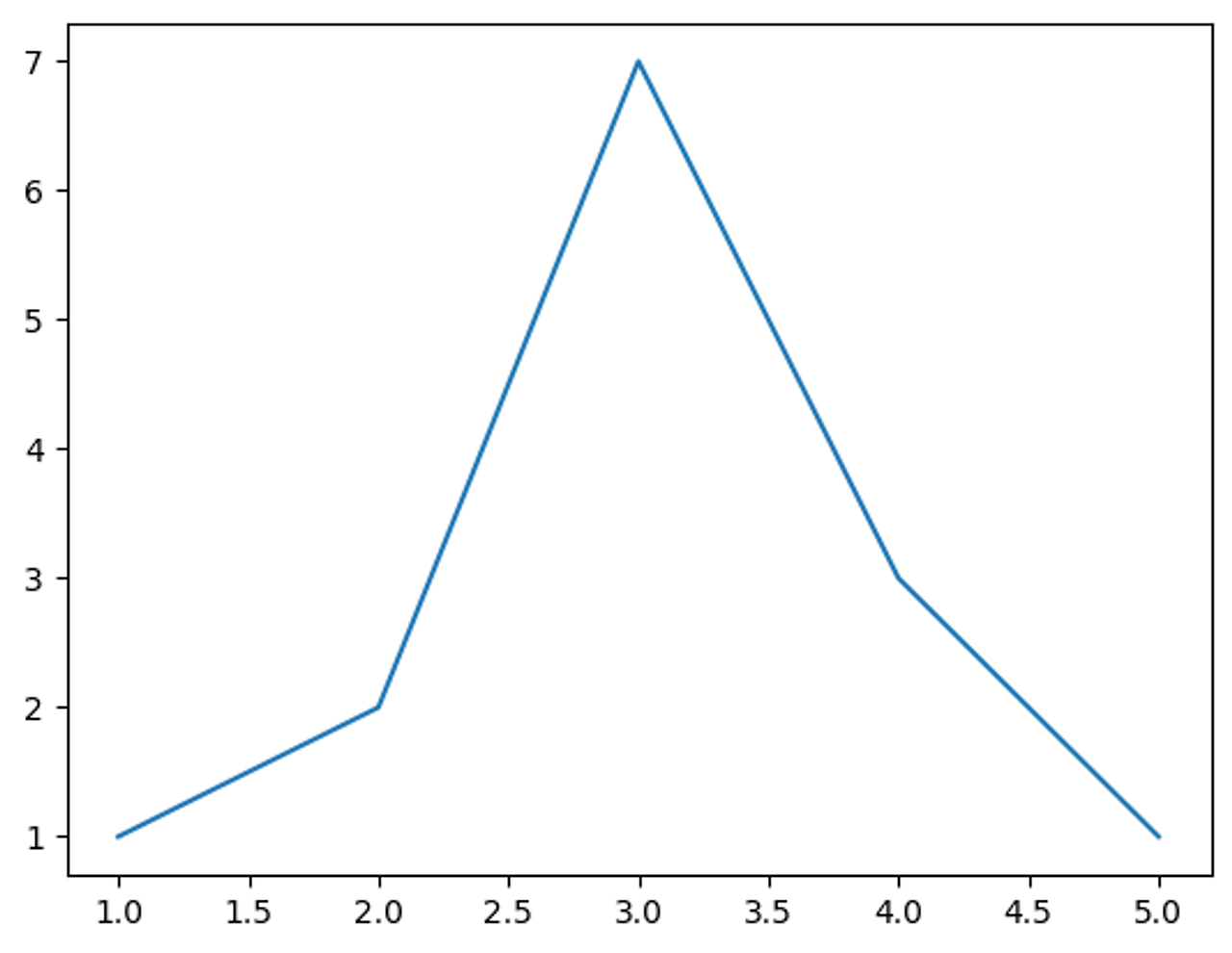 plt.plot([1, 2, 3, 4, 5], [1, 2, 7, 3, 1])