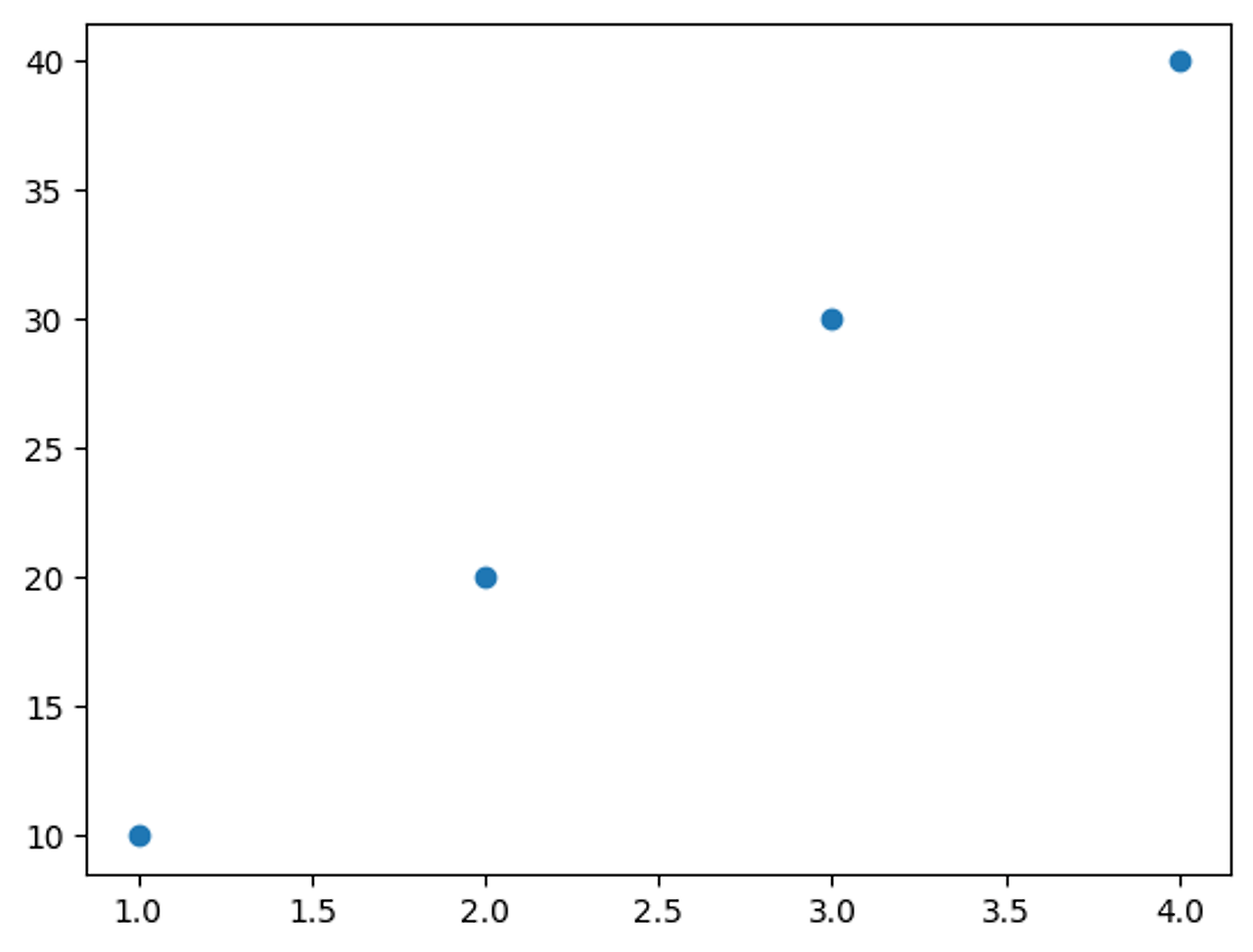 plt.plot([1, 2, 3, 4], [10, 20, 30, 40], 'o') # x-축 데이터와 y-축 데이터 모두 전달, x-축 데이터 개수와 y-축 테이터 개수 일치