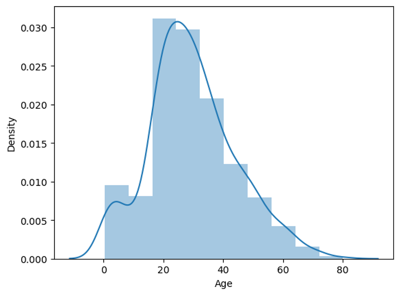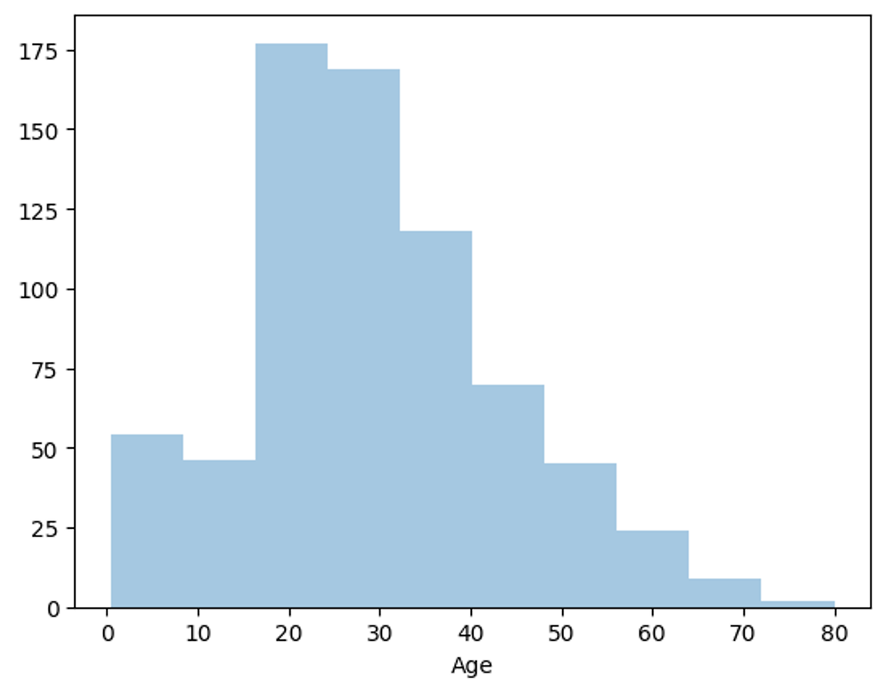 #sns.distplot(titanic_df['Age'], bins=10, kde =False)