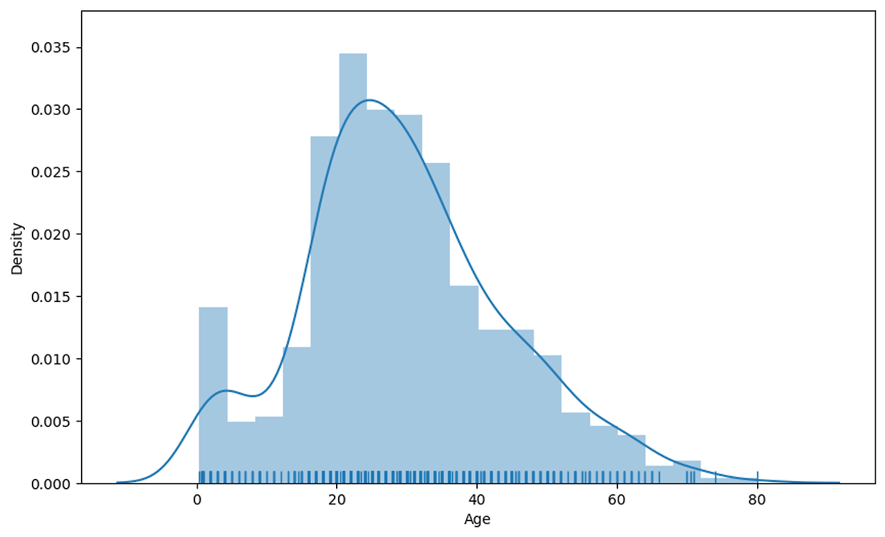 sns.distplot(titanic_df['Age'], kde=True, rug=True)