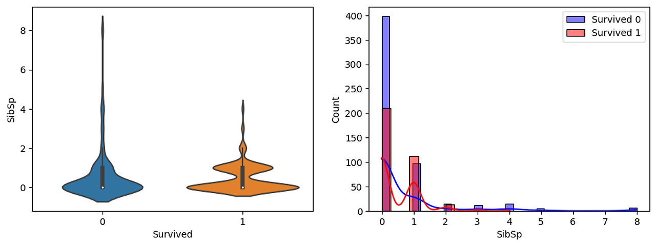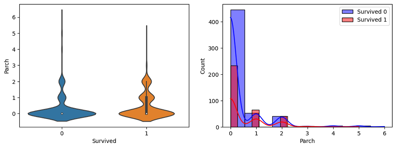 - 오른쪽에는 Survived가 0일때의 Histogram과 Survived가 1일때의 Histogram을 함께 표현