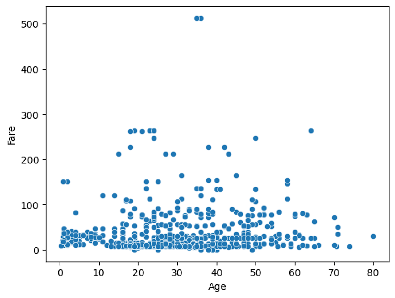 sns.scatterplot(x='Age', y='Fare', data=titanic_df)