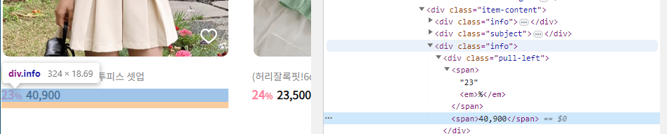 div_tags = products[0].findAll('div',{'class':'info'}) # info가 두개