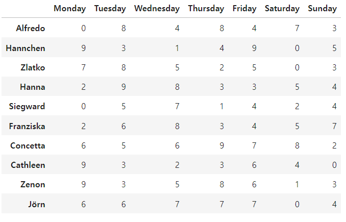 data[day] = np.random.randint(0, 10, (number_of_names,))