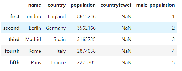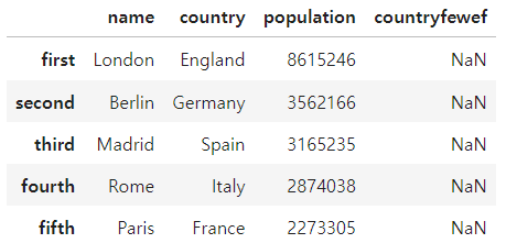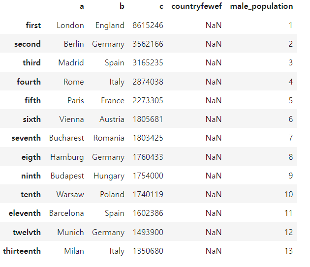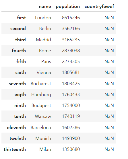 ⇒ 인덱스 다를때 서로 더해주면 같은 인덱스 끼리만 더하고 없는 건 NaN값 반환