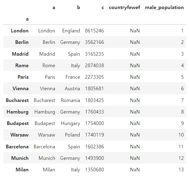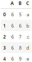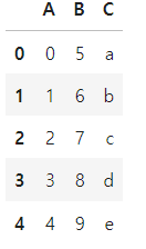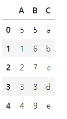 'C': ['a', 'b', 'c', 'd', 'e']})