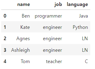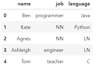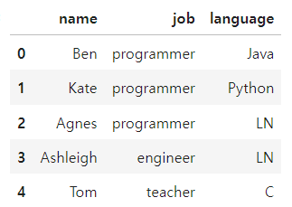 'language':['Java', 'Python', 'LN', 'LN', 'C']})