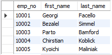 SELECT emp_no, first_name, last_name FROM employees.employees;