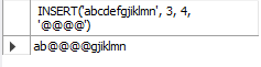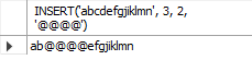 SELECT INSERT('abcdefgjiklmn', 3, 2, '@@@@');