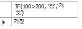 SELECT IF (100>200, '참이다', '거짓이다');