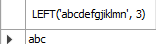SELECT LEFT('abcdefgjiklmn', 3);
