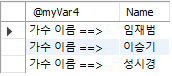 SET @myVar4 = '가수 이름 ==> ';