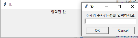 value = askinteger('확대배수', '주사위 숫자(1~6)를 입력하세요.', minvalue = 1, maxvalue = 6)