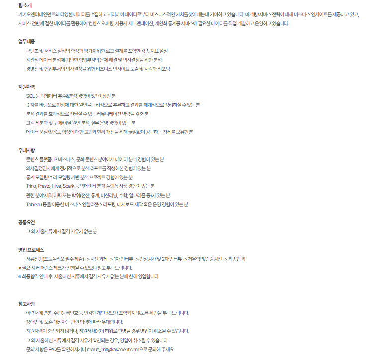 경력자 대상의 채용공고이긴 하지만 SQL문의 중요성을 다시 알게되는 공고였다.