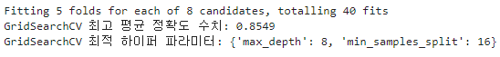 grid_cv = GridSearchCV(dt_clf, param_grid=params, scoring='accuracy', cv=5, verbose=1 )