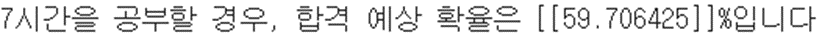 print(f'{hour}시간을 공부할 경우, 합격 예상 확율은 {prediction*100}%입니다')