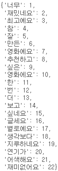 # 각 단어에 매겨진 인덱스 값을 출력하려면 word_index 속성에서 확인