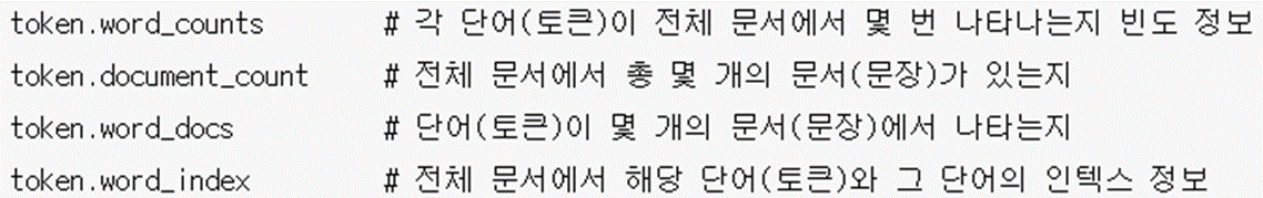 token.fit_on_texts(docs) # docs에 있는 텍스트를 토큰화함