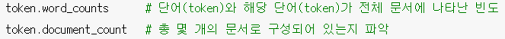 word_docs 속성 : 각 단어가 몇 개의 문서에 등장하는지 파악