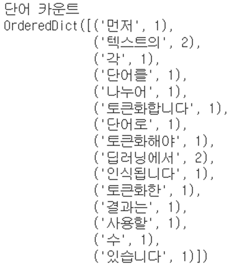 '토큰화한 결과는 딥러닝에서 사용할 수 있습니다.'