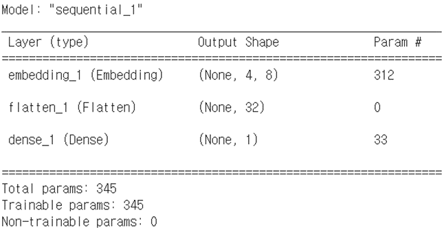 - 두 번째 매개변수 : 입력 벡터를 워드 임베딩을 해서 4차원 벡터로 출력