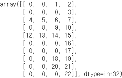 x = token.texts_to_sequences(['단맛 짠맛 꿀맛 매운맛']) # 토큰(단어)의 인텍스를 요소로 하는 배열을 생성