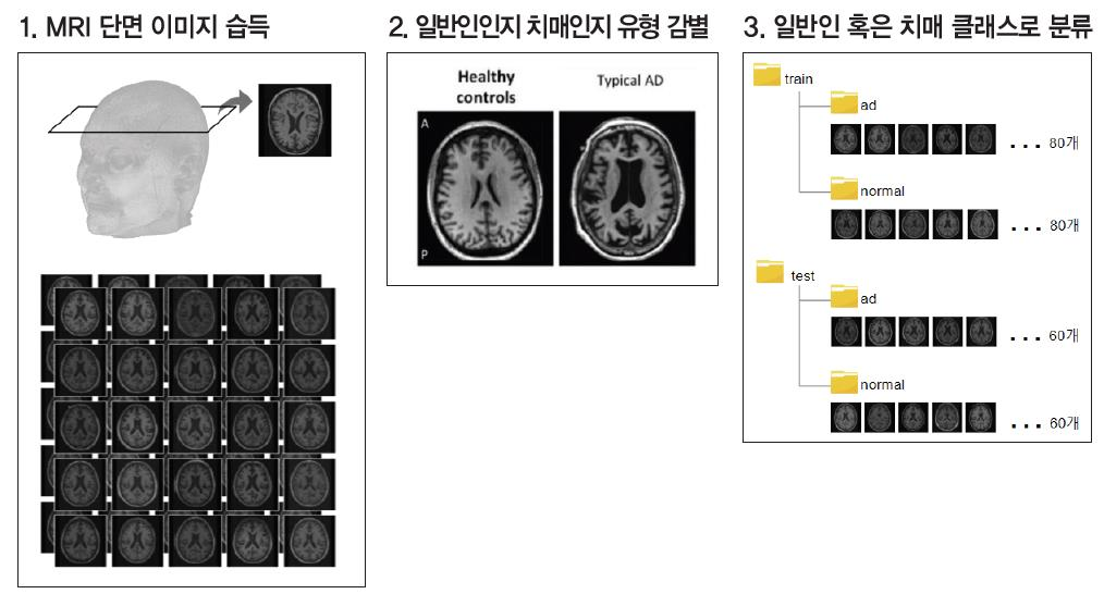 - MRI 뇌 사진을 보고 치매 환자의 뇌인지, 일반인의 뇌인지를 컨볼루션 신경망을 통해 예측해볼 것