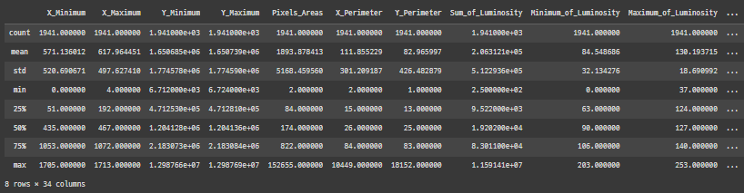 - 첫번째 칼럼 X_Minimum ~ 27번째 칼럼 SigmoidOfAreas