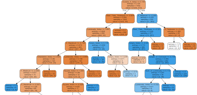 color_code = {'Pastry':'Red', 'Z_Scratch':'Blue', 'K_Scatch':'Green', 'Stains':'Black', 'Dirtiness':'Pink', 'Bumps':'Brown', 'Other_Faults':'Gold'}
