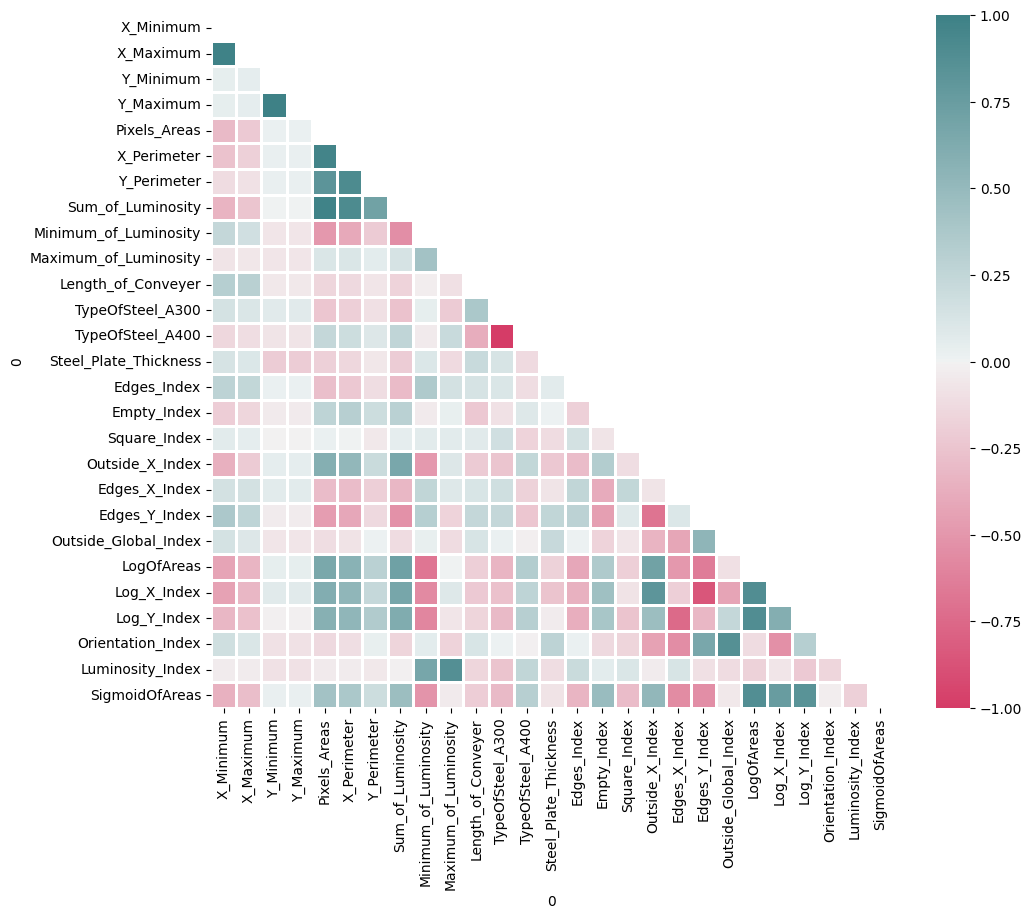 conditions=[(df['Pastry'] == 1) & (df['Z_Scratch'] == 0)& (df['K_Scatch'] == 0)& (df['Stains'] == 0)& (df['Dirtiness'] == 0)& (df['Bumps'] == 0)& (df['Other_Faults'] == 0),