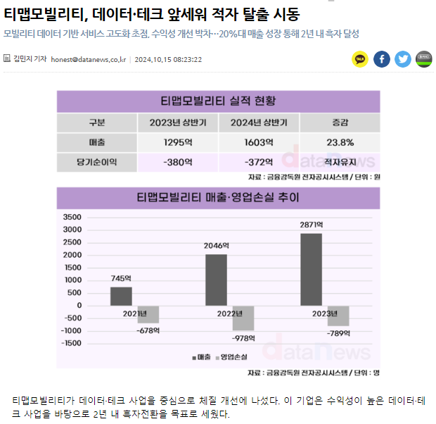 티맵모빌리티가 데이터·테크 사업을 중심으로 체질 개선에 나선 것은 매우 긍정적인 변화입니다.