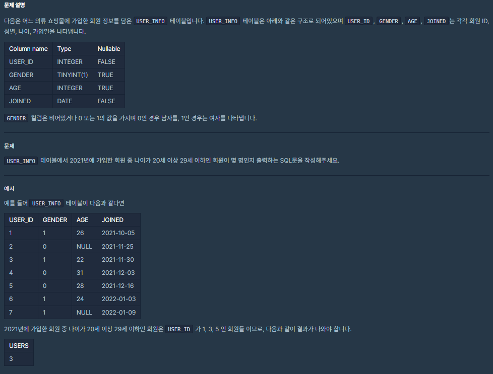 WHERE JOINED LIKE '%2021%' AND AGE BETWEEN 20 AND 29