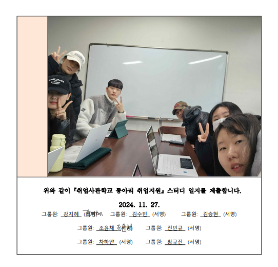 | 직무스터디 17일차 ( 2024.11.27 07:30~08:30 ) (0) | 2024.11.27 |