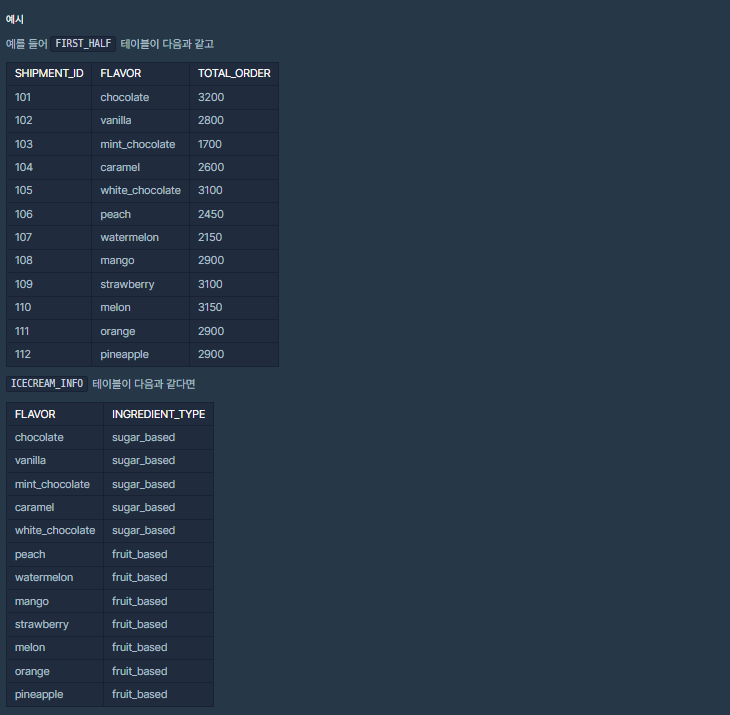 FROM ICECREAM_INFO I JOIN FIRST_HALF F