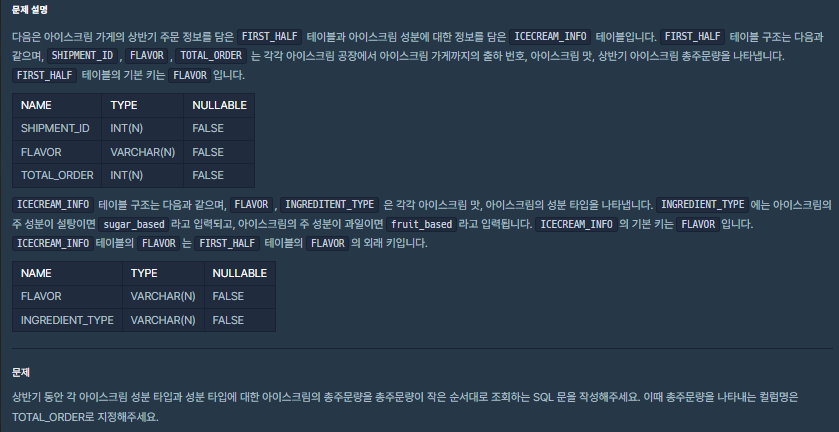 FROM FIRST_HALF JOIN ICECREAM_INFO ON FIRST_HALF.FLAVOR = ICECREAM_INFO.FLAVOR