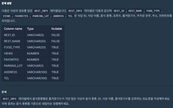 SELECT RI.FOOD_TYPE, RI.REST_ID, RI.REST_NAME, RI.FAVORITES