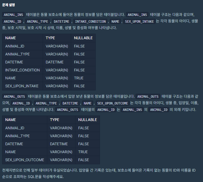 출처: 프로그래머스 코딩 테스트 연습, https://school.programmers.co.kr/learn/courses/30/lessons/59042
