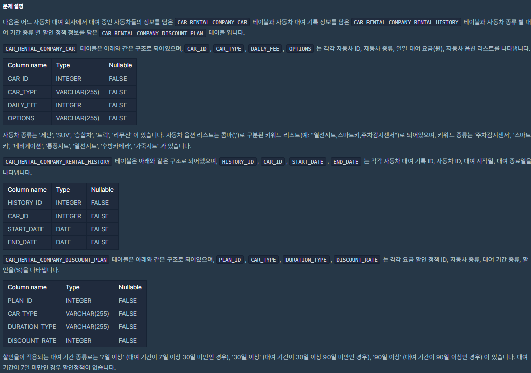 | 특정 기간동안 대여 가능한 자동차들의 대여비용 구하기 (1) | 2025.06.25 |