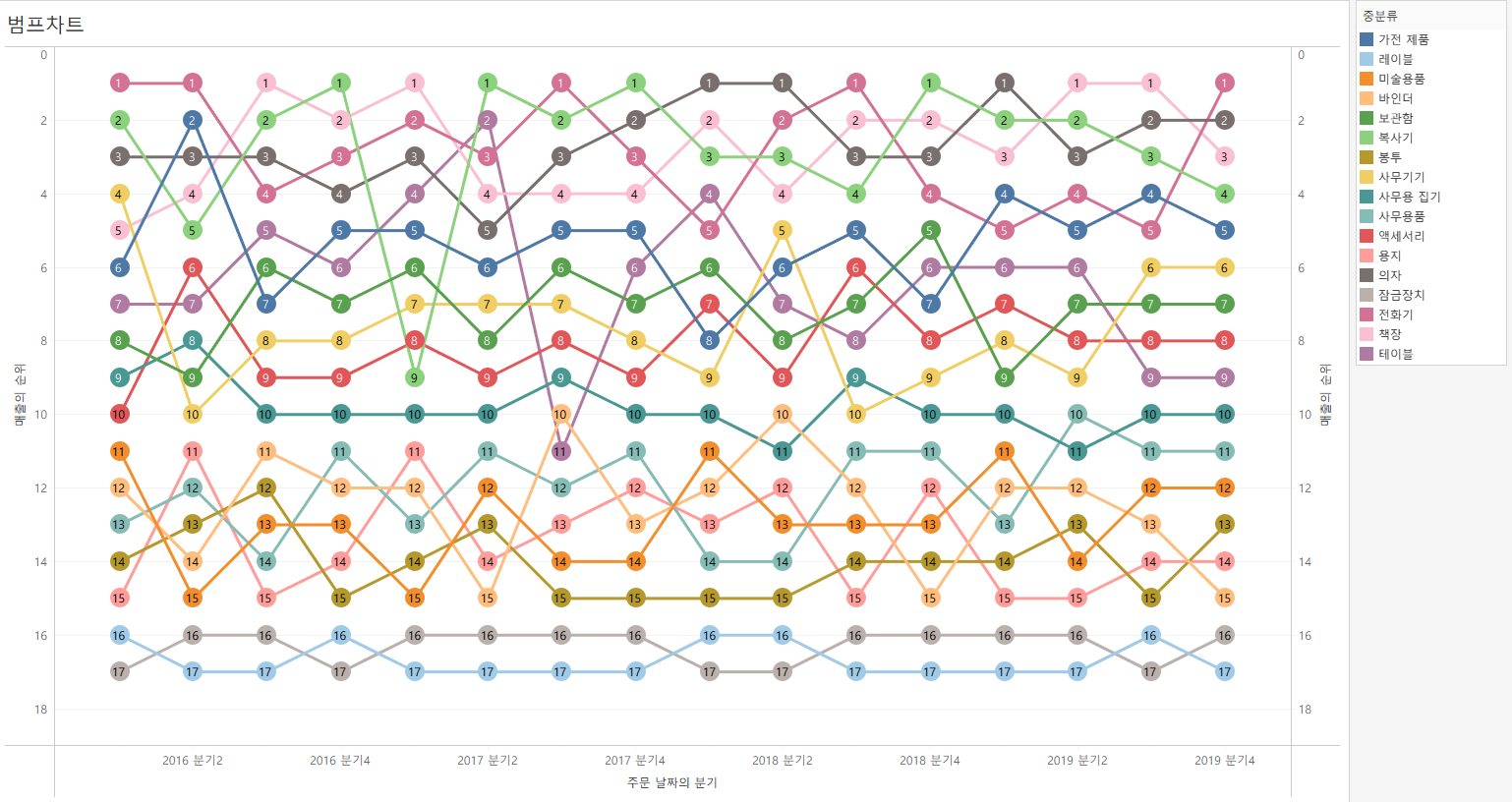 - 슈퍼스토어의 분위별 판매 상품 순위 변동