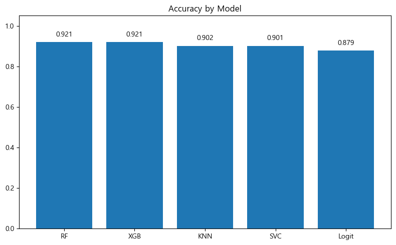 따라서 변수 간 비선형 관계를 잘 잡아내고 변수 간 상호작용도 자동으로 고려한다고 알려져 있는 RandomForest, XGBoost 같은 트리 기반 앙상블 모델 성능이 다른 Logistic, KNN, SVC보다 더 잘 나온 것 같다고 생각한다.