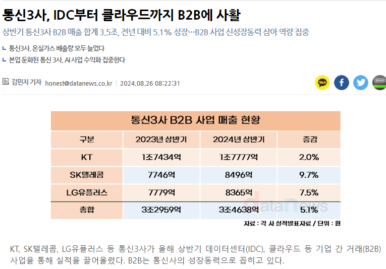 현재 한국의 데이터 시장은 빠르게 성장하고 있습니다. 기업들이 데이터 기반 의사결정을 통해 경쟁력을 높이려는 노력을 하고 있으며, 이는 데이터 분석가에 대한 수요를 증가시키고 있습니다. 예를 들어, 통신사들이 B2B 사업을 통해 데이터센터와 클라우드 서비스를 확장하고 있다는 점은 데이터 분야의 성장 가능성을 보여줍니다.